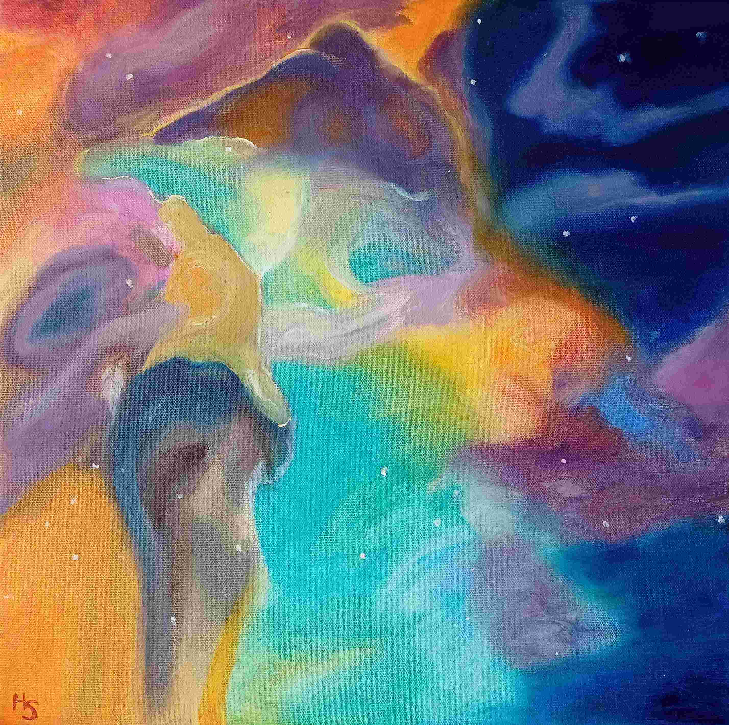 Ich male mit Acryl-, Öl- und Aquarellfarben.